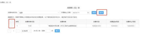 4、進入“發票驗(交)舊”模塊,選中要驗舊的票種,點擊“驗舊”。