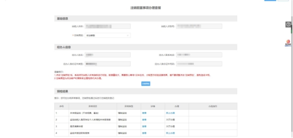 2、“注銷預檢”后提示“大廳辦理”的,建議提前電話聯系辦稅服務廳,確認所需攜帶的證件資料前往辦理。