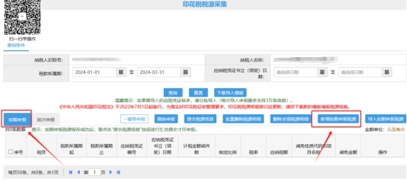 四、進入印花稅稅源采集界面,先點擊【按期申報】,再點擊右上角【新增按期申報稅源】。