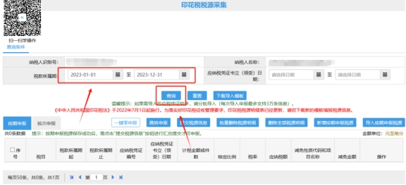 六、新增稅源信息保存成功后系統自動返回按期申報界面,根據查詢條件,選擇稅款所屬期2023年1月1日至2023年12月31日后點擊【查詢】。