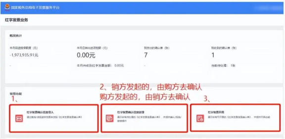 ② 受票方已進行用途確認時,可由購銷雙方任意一方在電子發(fā)票服務(wù)平臺--稅務(wù)數(shù)字賬戶(當(dāng)受票方為非試點納稅人時,在“增值稅發(fā)票綜合服務(wù)平臺-發(fā)票管理-紅字申請確認”發(fā)起和確認)發(fā)起《紅字信息確認單》,經(jīng)對方確認后全額或部分開具紅字數(shù)電票。
