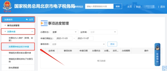 二、發票使用—發票申請—票種核定初次申請模塊申請紙質發票票種。