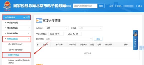 二、綜合信息報告—制度信息報告—網簽三方協議。
