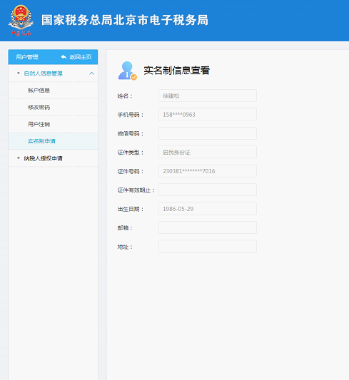 9.? 納稅人關聯成功后,可進行實名制信息的查看。