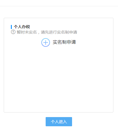 5.? 納稅人進入實名申請界面,首先進行個人辦稅實名申請,點擊“個人進入或實名制申請”按鈕。