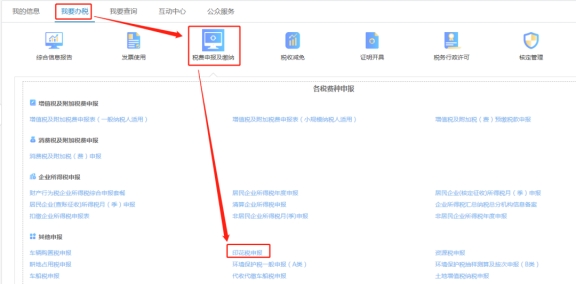 二、登錄電子稅務局后,可以通過【我要辦稅】—【稅費申報及繳納】—【印花稅申報】